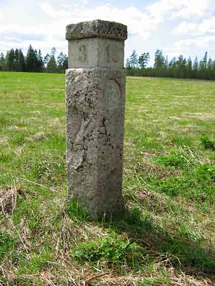 пограничный волостной столб в р-не Вуосалми, на железной трубе 3х метровой высоты.