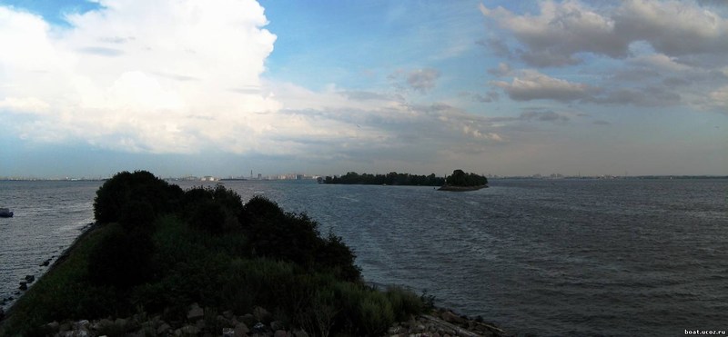 Закрытая часть морского канала. Ковш на переднем плане - рейдовое место, закрытое от волнения. Сейчас считается резервным, а когда-то в нем отстаивались суда в ожидании таможенников. В 1918-м при наступлении белых частей на Петроград в ковш был введен линкор "Заря свободы" для артподдержки красных в направлении Пулкова. Сейчас это выглядит вот так (снято с верхушки маяка):