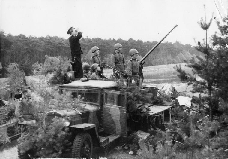 Зенитчики Балтийского флота охраняют войска от налетов вражеской авиации» Место действия: Ленинградский фронт. Расчет автоматической зенитной пушки 72-К образца 1940 г. калибра 25 мм, установленной на грузовом автомобиле ГАЗ-АА. Район Выборга. Лето 1944 года.