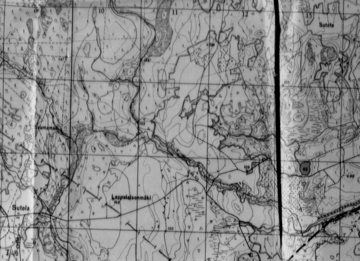 Наконец-то ситуация проясняется. Фантазия наших северных соседей действительно небогата и при внимательном рассмотрении карты местности обнаружилось два местечка под названием Sutela (в левом нижнем и правом верхнем углах). Первое наверняка и имелось в виду в ЖБД финских артиллеристов, как место падения самолета. Оно ближе к нейтральной полосе и к тому району, где мой отец обнаружил обломки(хотя по его словам это не были куски металла, а вполне узнаваемый корпус, бронеспинка в кабине и.т.д.). То, что это именно FIAT FA-17 сомневаться не приходится, ведь в противном случае территория в 2кв.км оказалась бы местом крушения 3-х военных самолетов(с учетом сбитого в 1942 бомбардировщика СБ-2), а это маловероятно. В любом случае радует, что это место не имеет отрицательной ауры, так как летчик остался жив.