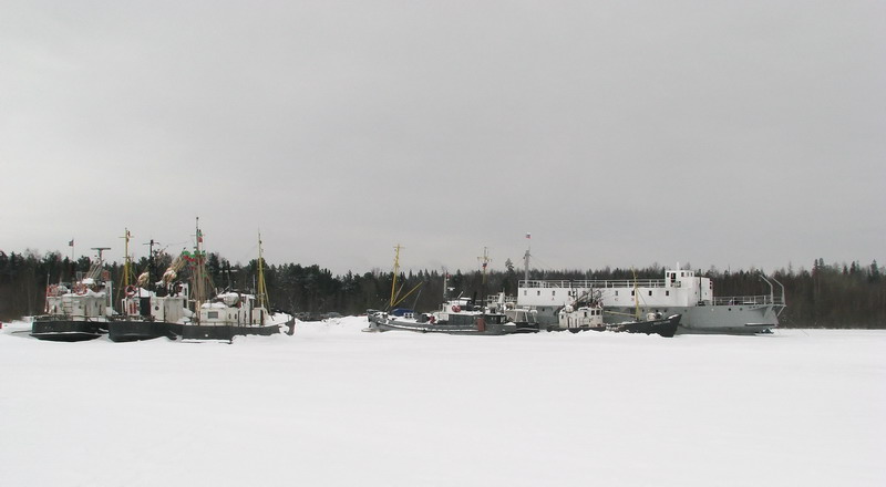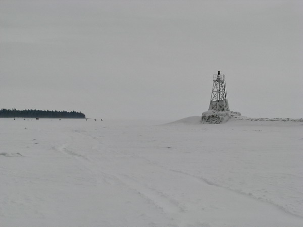 Пробовали на Коневец проехать на двух машинах на мартовские в 2010 году, но не угадали с погодой, да и снега в тот год было много. На лед заезжали с причала, обогнули мыс - на озере мело, вешек-веточек почти не видно. Доехали до рыбаков, дальше не стали рисковать.