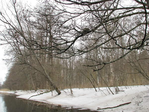 Погрызены в основном березы, довольно много. Чуть ниже по течению - и старые упавшие деревья. Местные дачники (в Холодном Ручье) говорят , что бобров стало больше, чем раньше, и видели их на реке совсем влизи жилья.