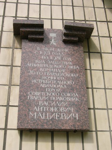 x3. Мемориальная доска Герою Советского Союза В. А. Мациевичу (пр. КИМа, 4).