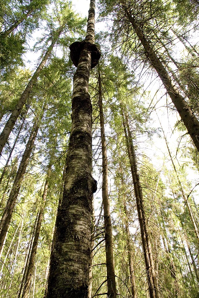 Тут форсировали ручей, научил собаку плохому - пить прямо из ручья, а не из миски. Дальше был ельник с редкими небольшими опорными пунктами. Встретил странную березу.