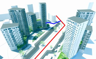 Ну не знаю, объезд д. 116 по Новаторов не очень большой, в принципе, может и тянуть на начало. Если взять одну из представленных реноваторами схем и добавить этот самый объезд, а концовку просто вывести под углом к Хрустицкого (всё по красным линиям внутриквартальников, предложенных в плане межевания), то получится хоть немного извращённо, но на мой взгляд приемлемо (синяя - это проезд, красная на второй картинке - Новаторов):