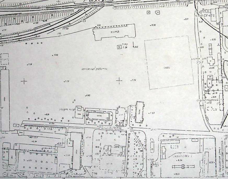 Из всех вариантов склоняюсь к тому, что стадион мог размещаться в том месте, где на топоплане есть подпись "зем.работы". Рядом было некое здание с пояснит.подписью "спорт.клуб", которое находится рядом с домом под №13. Да и свободного пространства (в то время) для спорт.сооружения в ближайшей округе к К.проезду просто нет.