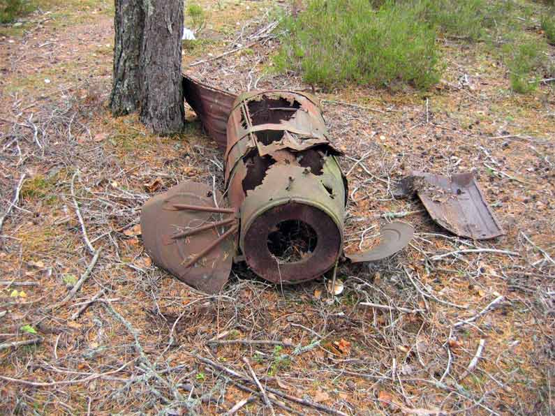 Что за ... железяка ржавая? Смущает наличие сзади стабилизаторов, расположенных под углом, что наводит на мысль о том, что это сбрасывалось и в полете должно было закручиваться...