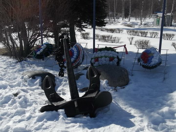Тут же на набережной еще одно напоминание о войне - памятник морякам Онежской военной флотилии, за победу над финскими захватчиками награжденными орденом Красного Знамени: