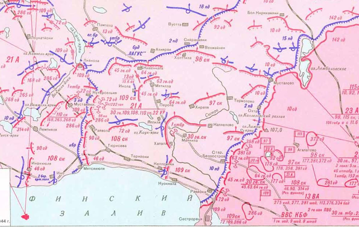 А где линия ВТ была прорвана сразу? На острие прорыва вдоль Выборгского шоссе 30ГСК Симоняка был остановлен сразу за Кивеннапа и больше наступать не смог. Потом его ввели в наступление уже под Тали-Ихантала.