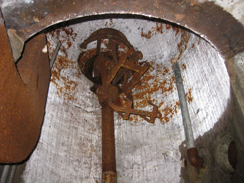 Естественно, это современное фото колпака обр.42 года(?) без пулемета – с установленным вооружением сектор обзора из него будет минимальным. Вот аналогичный колпак изнутри – хорошо виден станок пулемета. Представьте еще сам пулемет с запасом патронов. Сколько там места еще останется?