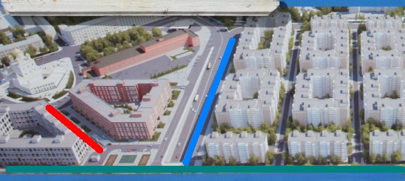 - проезд вдоль синей черты... а почему бы и не Украинская ул., всё же, в частности - с учётом того, что тоннель/путепровод затем соединит разные части центра, имеющие "малоросийскую" топонимию. Параллельные ему проезды правее (южнее) - имхо, можно увязать с железнодорожной тематикой.