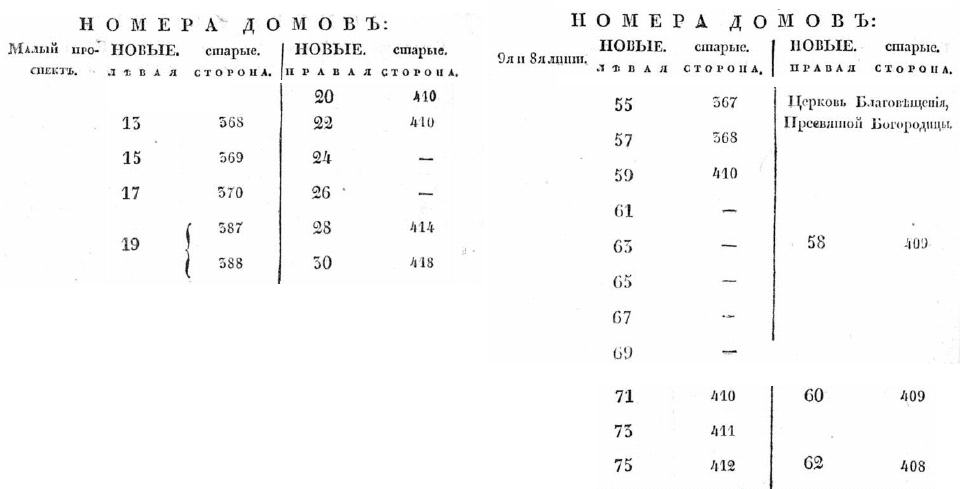 Итого нумеровано по 9 линии 7 домов, по Малому проспекту 4, что и совпадает с планом Шуберта.