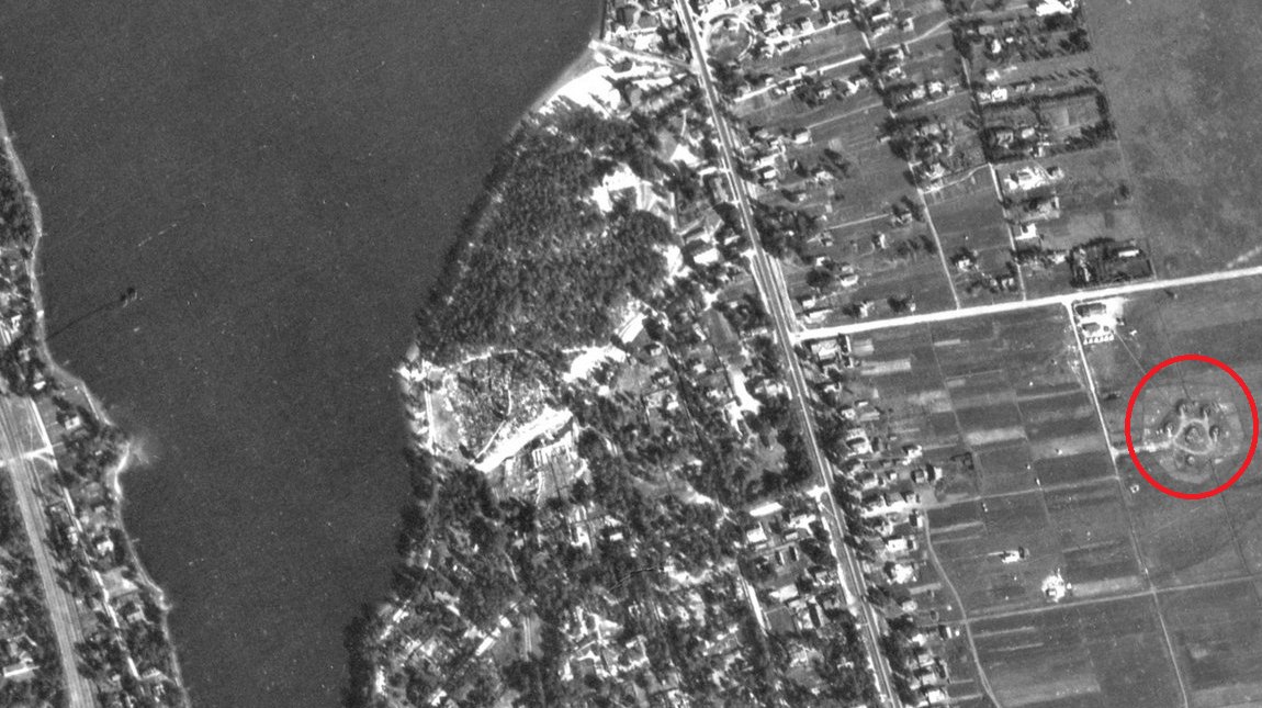 На аэрофотосъёмке военного времени слева от Дороги на Бугры непонятное сооружение, или торфоразработки?