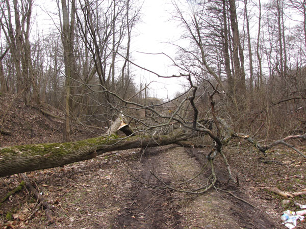 Мимо этой кучи даже пешком пройти довольно сложно, т. к. сразу по сторонам от нее - глубокие ямы, залитые водой. Что ж, спасибо неизвестному доброму человеку! Мы-то пройдем как-нибудь. Но вот заехать на батарею сейчас быстро не получится. И теперь надо отслеживать состояние этих преград.