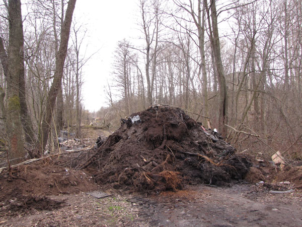 Пока сидели в погребе приезжал кто-то на экскаваторе, завалил на дорогу сухое дерево и тут же на проезде насыпал высоченную кучу земли.