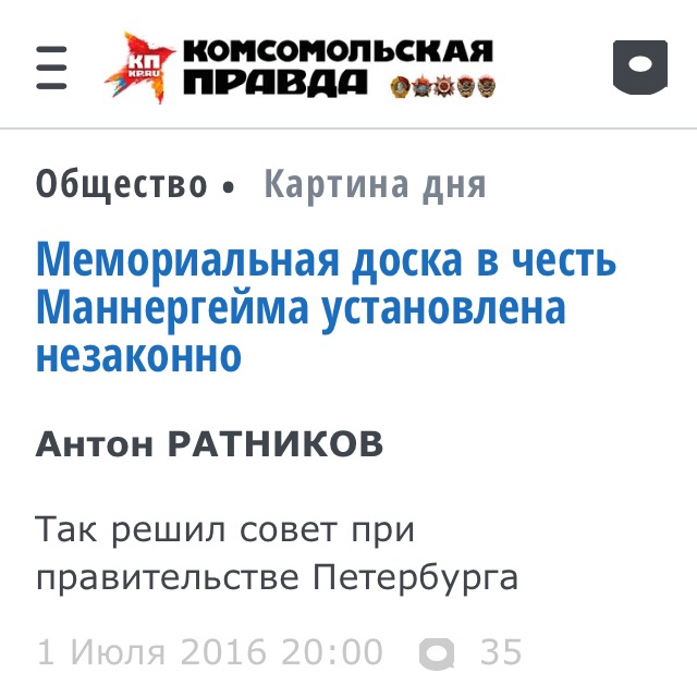 Re: 16 июня представитель Путина откроет доску Маннергейму [сообщение #185348 является ответом на сообщение #185345] пт, 07 октября 2016 20:12 Переход к предыдущему сообщенияПереход к предыдущему сообщения