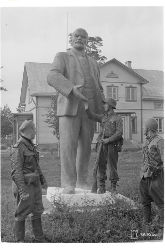 Да этот памятник Петру Великому в Выборге финны дважды заваливали:в 1927 и 1941.Потому что хотели иметь на этом месте памятник Независимости.Что сделал для них Петр,когда "прорубил окно в Европу" и стал из него "грозить надменному соседу".При этом ингерманландские племена проживавшие на территории,которая сейчас называется Ленинградская область,а заоодно и прионежских карел принял под свою опеку,сделал крепостными тех,кто не успел разбежаться по лесам и болотам.И построил в итоге Российскую Империю,которую известный классик назвал впоследствии "тюрьмой народов"[ хотя сам-то что организовал и построил,придётся разбирать ещё очень и очень долго].И вот этот "классик" у финнов в большом почёте,ибо даровал он им их вожделенную независимость в 1918 [ правда,есть основания сомневаться в искренности такого подарка,т.к. следом вдруг приключился "красный мятеж" по замыслу организаторов которого,должен был привести страну Суоми обратно,в союз нерушимый республик свободных.Иначе,зачем Ленин встречался с Э.Гюллингом,?]. Так вот на фото памятник вождю мирового пролетариата в Ряйсяля ( с 1948 Мельниково).Финны его в 1941 аккуратно демонтировали и вывезли в Хельсинки,где учредили музей вождя.Почувствуйте разницу.