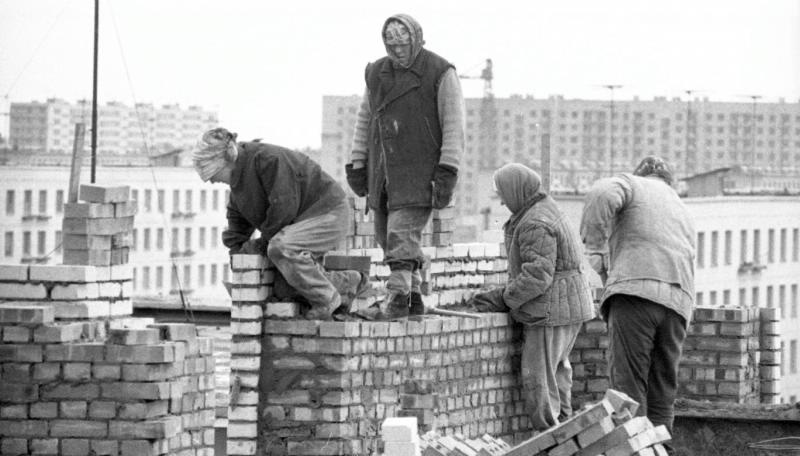 То есть, эта фотография не зеркальная. И, если посмотреть на кладку, над которой трудятся женщины на дальнем плане, то она один в один эта:
