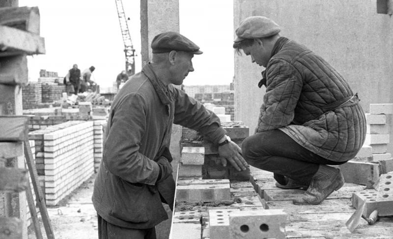 Но фото не зеркальное. Объясню почему. Карман на спецовке каменщика Филиппова на левой стороне, как видим на двух нижних фотографиях.