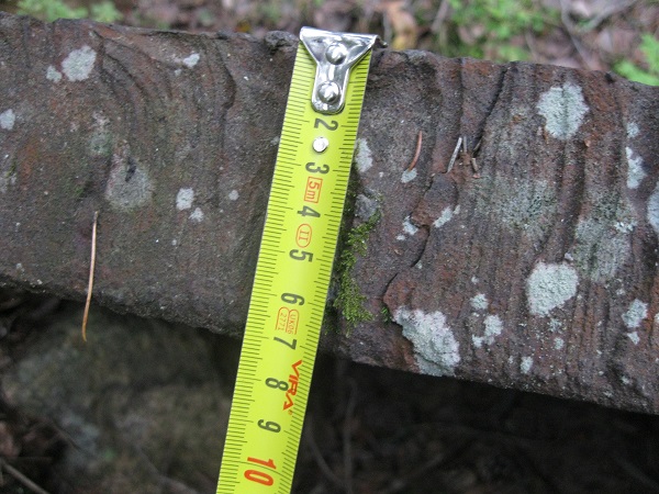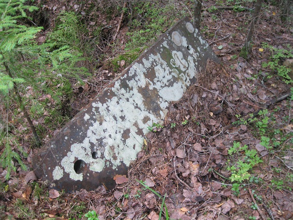 Далее прошли вдоль финской траншее и вот такая интересная находка, стрелковая ячейка прикрыта бронелистом вкопанным в землю под углом 45 градусов. Длина 1200 мм, толщина 70 мм, а насколько он зарыт конечно не понять.