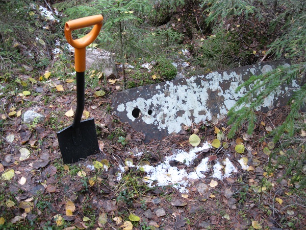 И решили проверить, может и найденная нами плита служила как укрытие для наблюдателя. Приехали, как смогли обкопали, но не амбразуры, ни наблюдательной щели нет. Видимо броня просто служила прикрытием для КП или НП.
