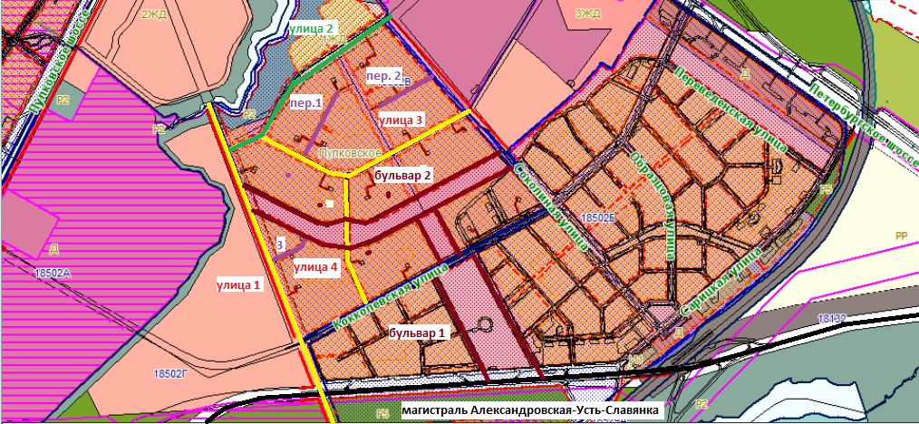 Застройщики потихоньку подбираются к давно распланированной территории в районе Верхнего Кузьмина. Соколиная улица ограничивает этот квартал с востока, Кокколевская проходит насквозь, а больше официальных названий не имеется. В планировке помимо улиц есть два причудливых бульвара и три переулка, два из которых являются псевдотупиками. Две улицы, видимо, выйдут к Петербургскому шоссе мимо Экспофорума, но там нет ППТ.