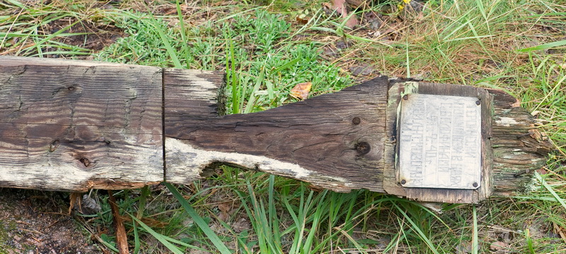 Столб, деревянный, подгнивший. Табличка небольшая, прибита гвоздями.