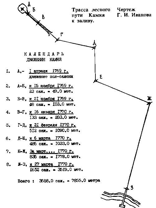 Автор рассчитал и вычертил путь движения камня к месту назначения.