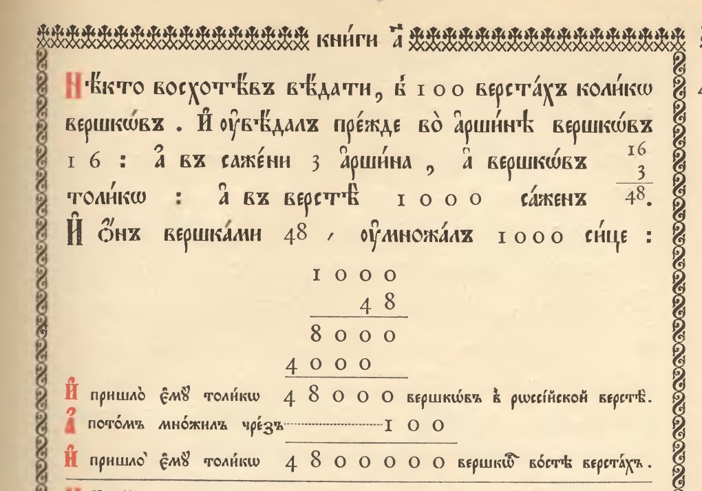 Про тысячу саженей в версте - из "Арифметики Магницкого", "Точное воспроизведение подлинника, 1914 год"