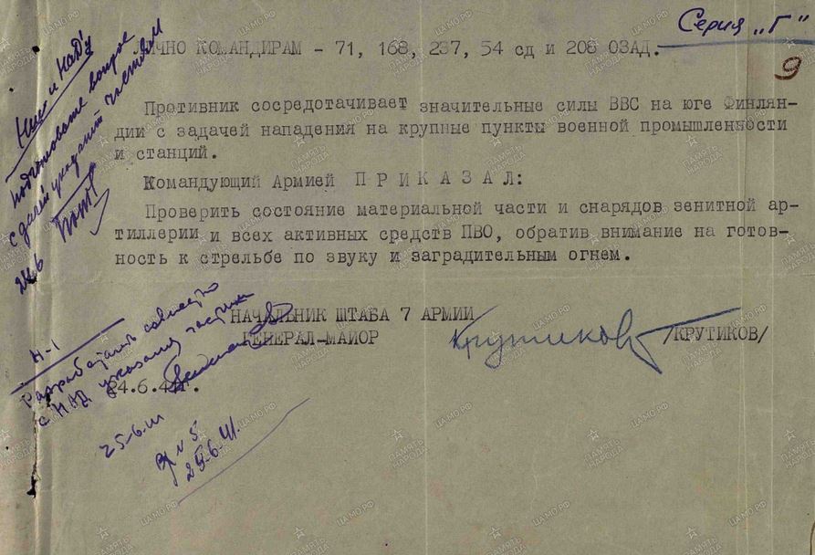 Из документа видно, что командование всерьез было озабочено опасностью налетов со стороны Финляндии.