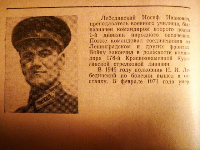 В книге И.А.Крестовский. В боях - кировцы. Ополченцы. Рассказывают участники обороны Ленинграда: сборник /Составитель. Б.Е. Столпнер; авт. предисл. Д. Гранин. - Лениздат, 1975 по какой-то причине умолчали, что до Лебединского 2-м стрелковым полком командовал майор Сучков Алексей Герасимович