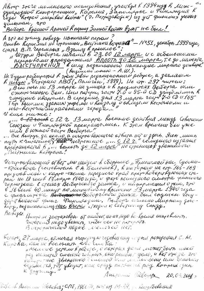 Так зачем было нужно ответить на этот вопрос. 1995 году обсуждался один момент Зимней войны. Зачем нужно было штурмовать г. Выборг 13 марта 1940года? Достиг ли цели или нет, этот штурм. Обсуждали представители исторических организаций Финляндии, Прибалтики и мы. Нас назвали оккупантами все остальные участники. Единственно о чём они спорили, почему 3 страны вошли в состав СССР, а одна нет. Я думал, страсти улеглись за 23 года. Может, теперь спокойно решим вопрос о штурме. У нас есть наработки. Пока их приводить не буду. Может, будут интересные новые соображения. Тогда обсудим.
