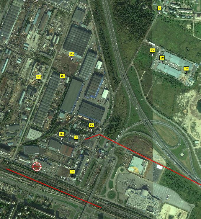 Вы поставили точку как раз на границе поля и не поля. Я преполагал, что завод находится далее на северо-запад, там, где болото. Однако пришлось проверить привязку и вот что получается: