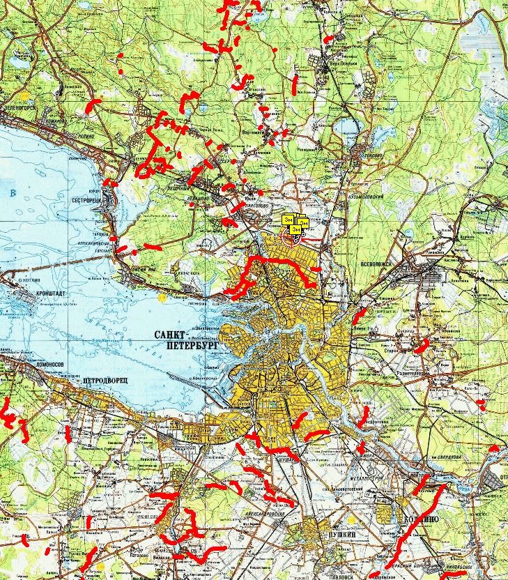 Поля там были везде. Вы это видите не хуже меня, имея перед глазами известную топокарту 50-х годов и Генплан Ленинграда 1955. Там же видите сплошные канавы. И противотанковые рвы - от Поклонной годы через Озерки в Коломяги на запад. И от Поклонной горы до нынешнего совхоза Ручьи на восток с указанной на топокарте шириной и глубиной рва. Ров южнее Бугров нигде не обозначен. Да и с военной точки зрения это не имеет смысла.