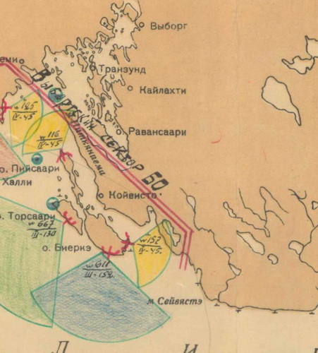 Схема БО КБФ, на основе морской генеральной карты сост.1941 - с сожалению, единственная похожая на морскую за искомый период в моей коллекции: Выборг, Транзунд, мыс Сейвястэ.