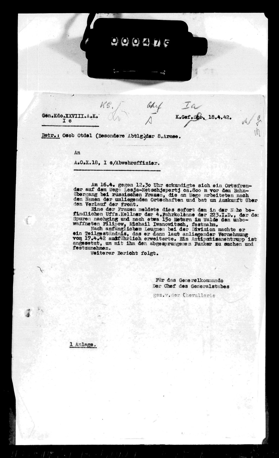 Штаб XXVIII корпуса 18 апреля 1942 г.