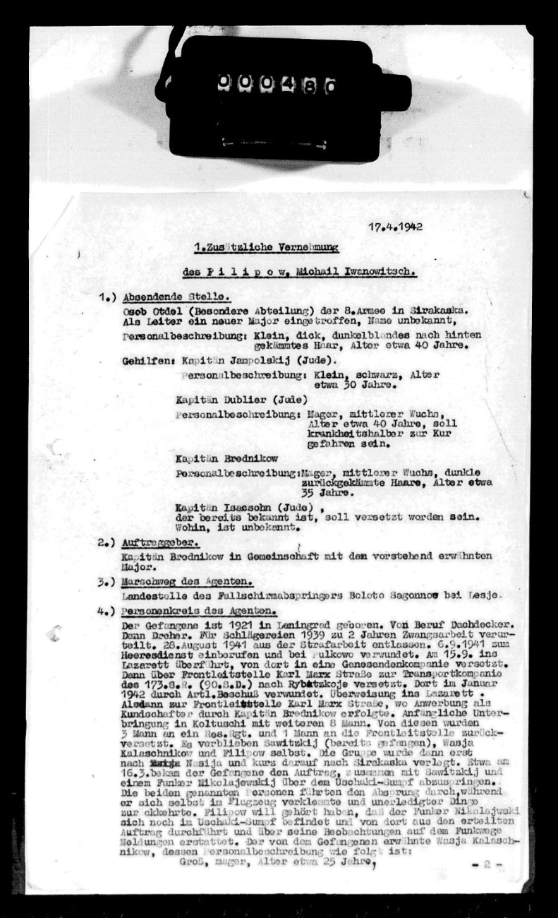 Пленный не знает его задания. После того, как последний отправился на задание, Филлипов жил вместе с
