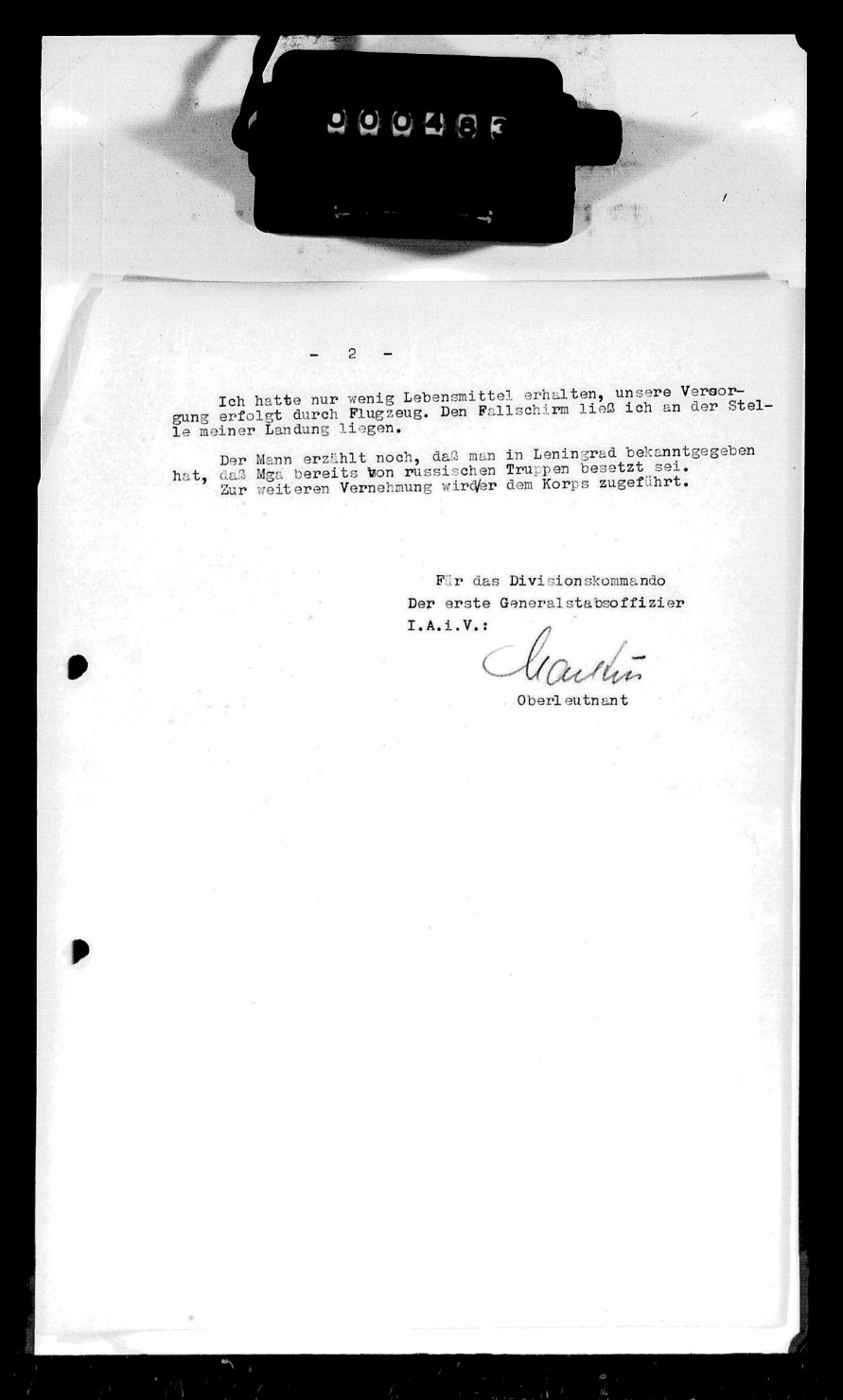 Приставленный к пленному радист прибыл из Волхова с еще четырьмя людьми. Его фамилия должна