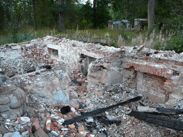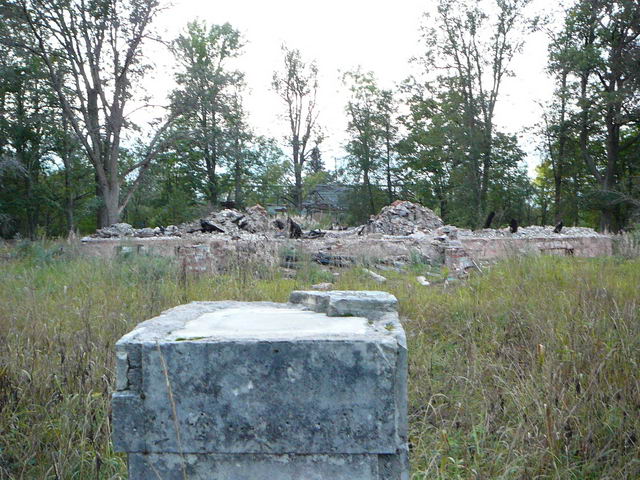 Кто то уже начал разбор пепелища. Видать кто то специально постарался. Хотя до сих пор неизвестно чьи это земли. Лет ...цать назад там был деЦкий сад одного оборонного предприятия ( и по соседству мой пиоерлагерь :) ) в пост перестроечное время все от этой территории отказались. Вот так и пустовала, подвергаясь набегам марардеров.