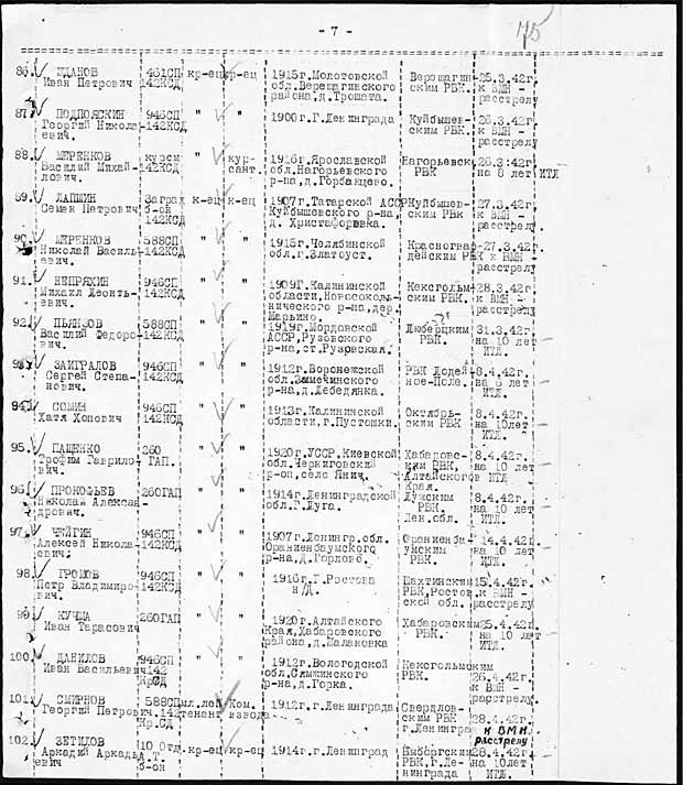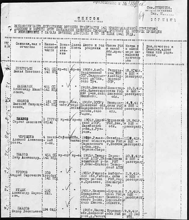 списки безвозвратных потерь по 142 СД, такое ощущение, что половину личного состава расстреляли свои же.