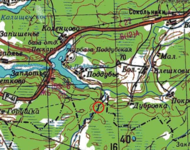 Находиться на р. Черная. Расстояние от Заплотья и Поддубья примерно одинаковое. Я шел от Заплотья (там автобус/маршрутка останавливается), через садоводство, всего около 3-х км.
