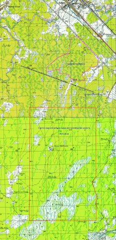 На картинке (по 500-метровке рисовано) красным - на севере контуры садоводства, на юге контуры участка недр (инфа из вышеуказанного файла).