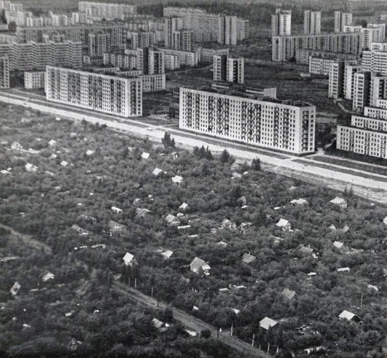 Сам живу в Дачном, поэтому за это фото спасибо огромное! Какой это год, известно? Судя по тому, что "корабли" по одну сторону Дачного уже стоят (дома 3 к.1, 7 к.1 и 9 к.2), а по другую еще нет, то где-то первая половина 70-х. Кстати откуда это фото, если не секрет? Из книги какой-нибудь?
