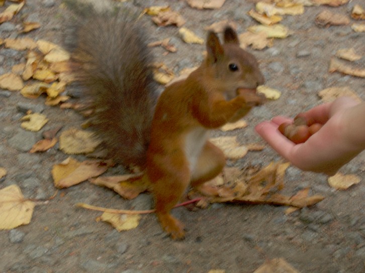 Кстати, она вообще не ела орехи. Она их забирала, закапывала в метре от дороги и бежала за следующим.