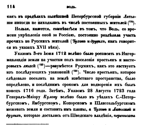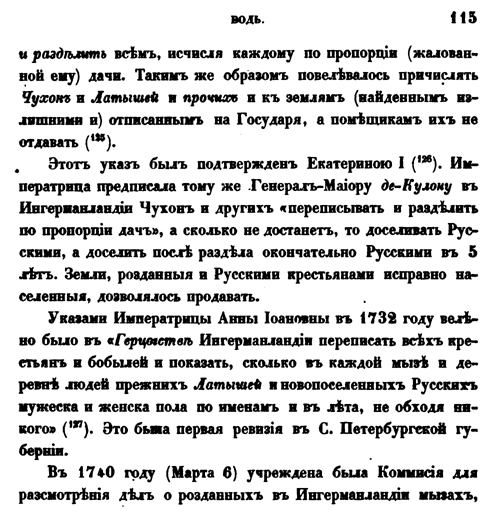 Выдержки из книги "История инородцев в России" упомянутого П. Кеппена, 1861г. о государственной политике России по поводу "латышей и прочьей чухны" в Ингерманландии в начале 18 века.