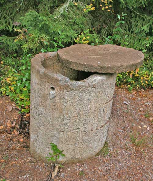 Это колодцы для закладки фугасных зарядов. Колодцы монтировались в полотно дороги и закрывались крышкой. Если обратил внимание - их много валяется около дамбы в Askola.....