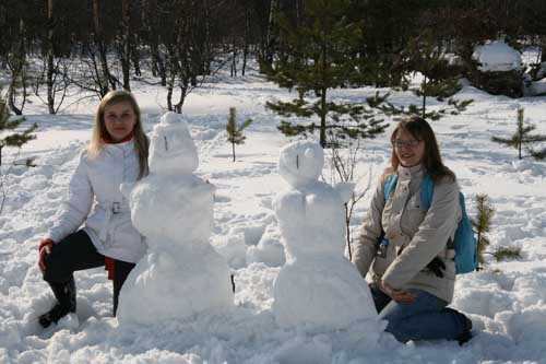 Девчонки строили снеговиков с выраженными вторичными половыми признакми...