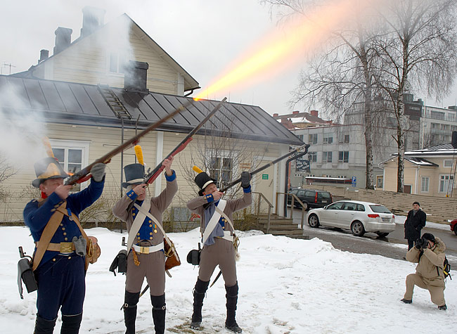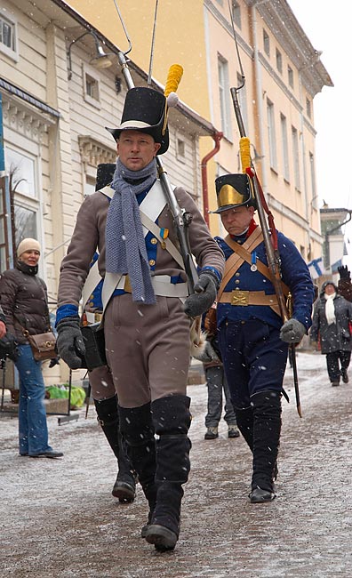 Совершенно невзначай, т.е. просто случайным образом посетил финский город Порвоо в день ненастный и на его улицах обнаружились реконструкторы в кол-ве 4-х чек. Один из них (правый на снимке), во первых - знакомый, в вторых - наш.