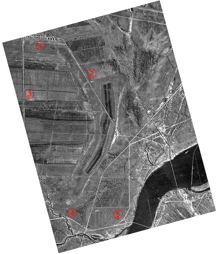 Немецкий аэрофотоснимок 1943 г. Развёрнут по сторонам света, с тем, чтобы легче воспринимать местность