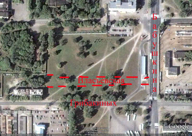 как я понимаю, Власьевская ул. шла от ул. Бабушкина в сторону ст. Обухово по краю жилмассива нынешнего, между ним и садоводствами? Там есть проезд, который очень напоминает небольшую улицу, между жилыми домами и садоводствами.
